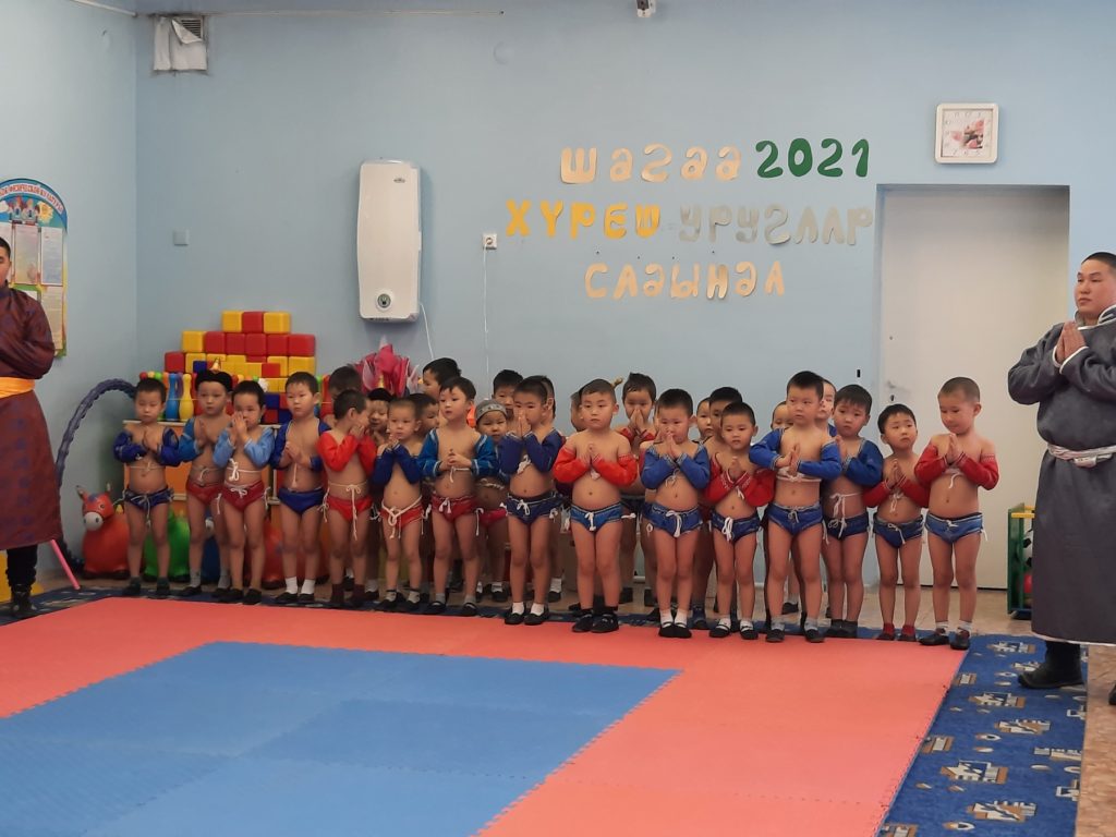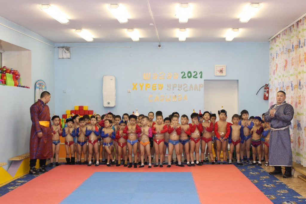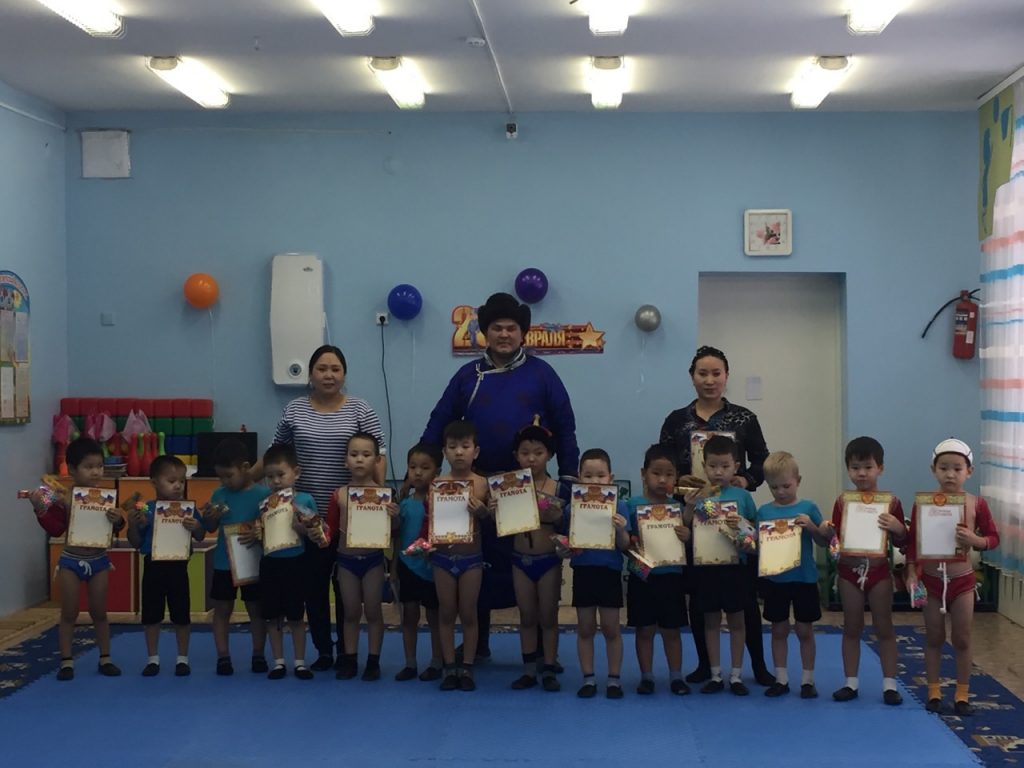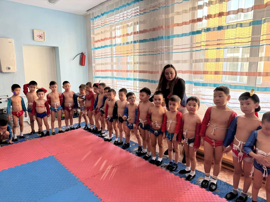 В рамках реализации ведомственного проекта Министерства образования Республики Тыва «Хуреш в детские сады» в нашем детском саду ежемесячно проводятся соревнования среди мальчиков 4-7 лет.