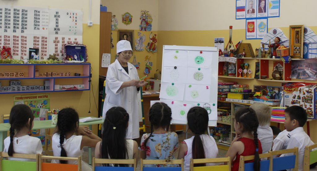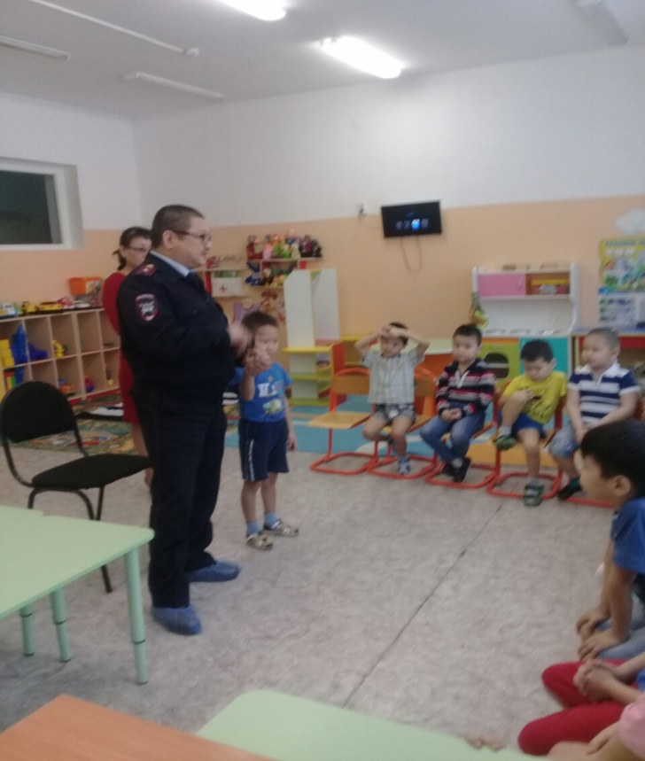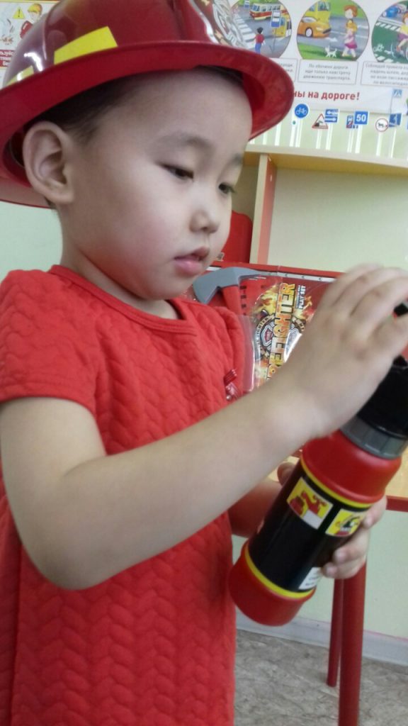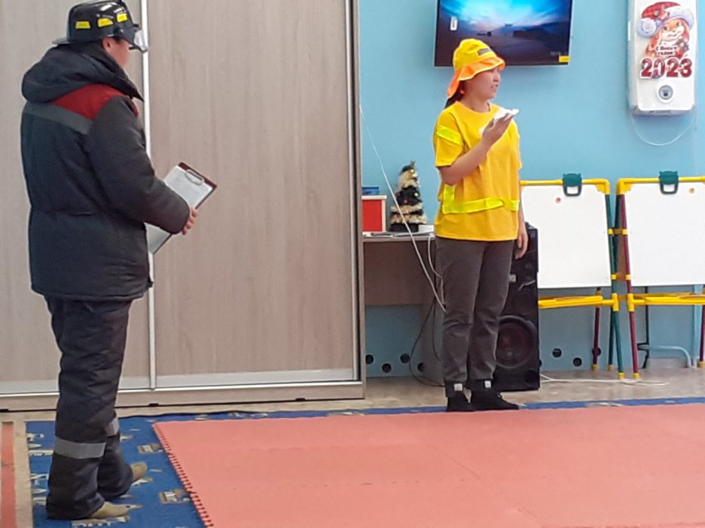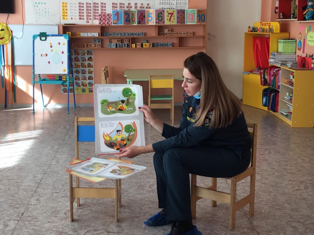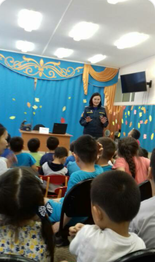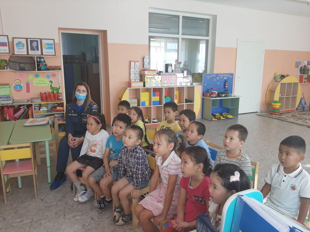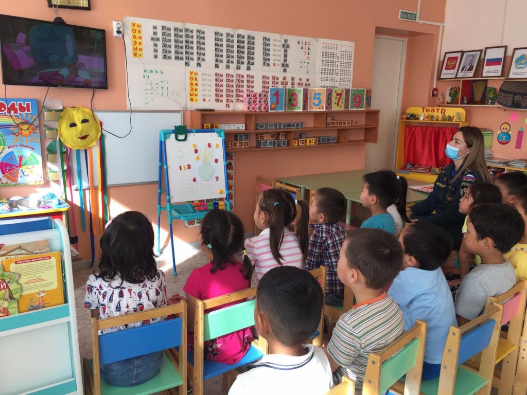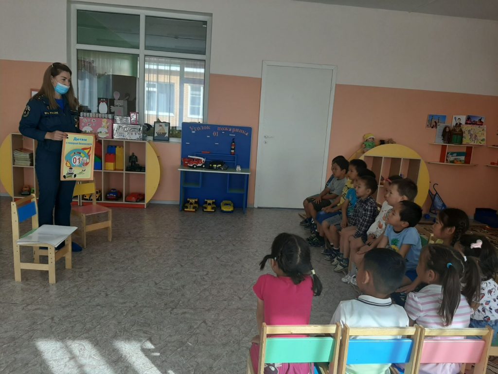 В детский сад была приглашена инспектор отделения надзорной деятельности и профилактической работы Управления МЧС по городу Кызыл Чодураа Альбертовна Тумен-Байыр. Она провела встречу с воспитанниками старших и подготовительных групп, во время которой познакомила с профессией пожарного, разъяснила детям правила безопасного поведения и правила поведения при возникновении угрозы пожара.