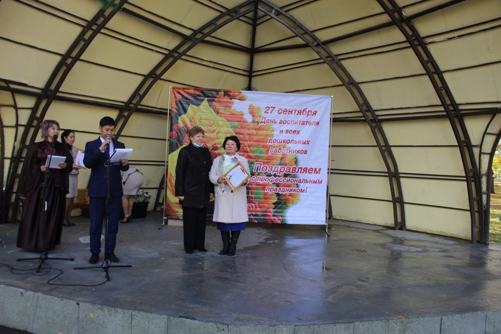 27 сентября 2016 года в городе Кызыле прошли торжественные мероприятия, посвященные «Дню воспитателя и всех дошкольных работников». Ежегодно, по традиции, в торжественной обстановке проходит церемония посвящения молодых специалистов в профессию. В этом году пятнадцать молодых воспитателей Кызыла у памятника Первым русским учителям поклялись добросовестно работать, уделять воспитанникам должное внимание и заботу, любить и уважать свою работу. Среди них были и молодые воспитатели Детского сада «Кежик». Их пришли поддержать директор Сарыг-Донгак Д. Н. и председатель профсоюза садика Дамба Ш.М.