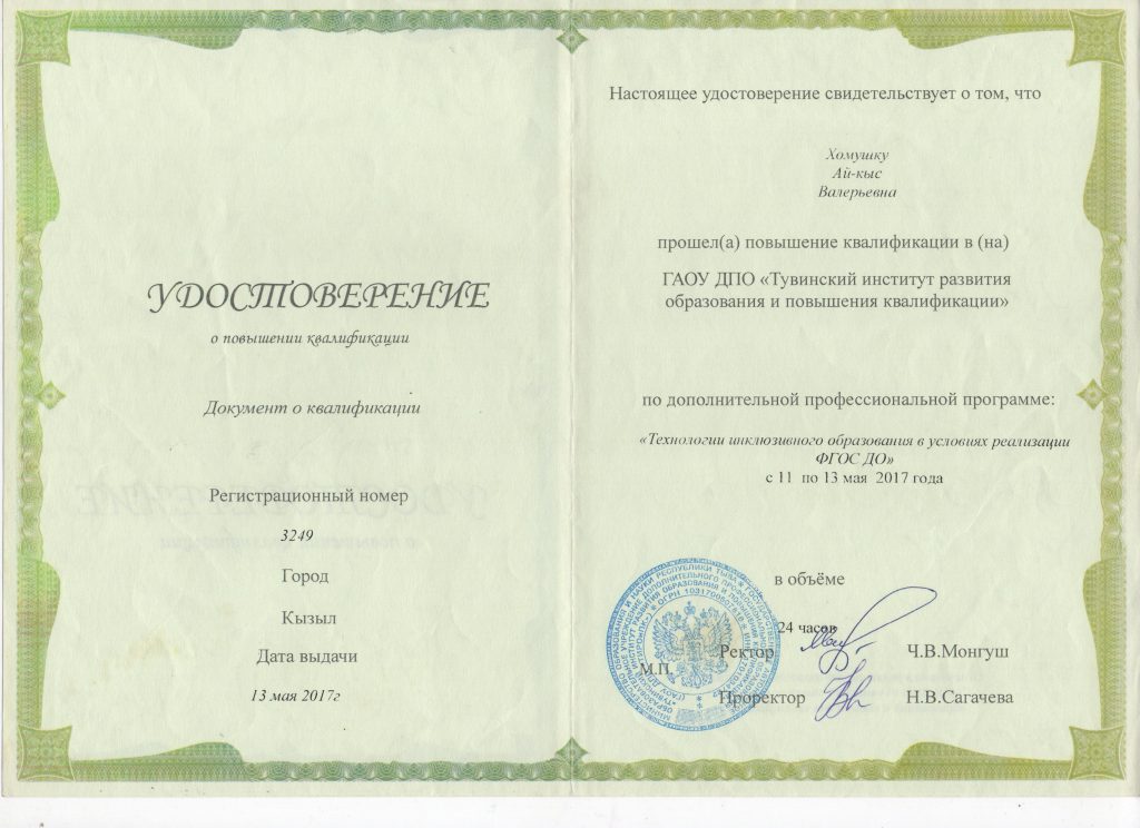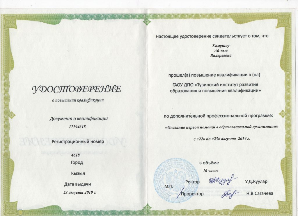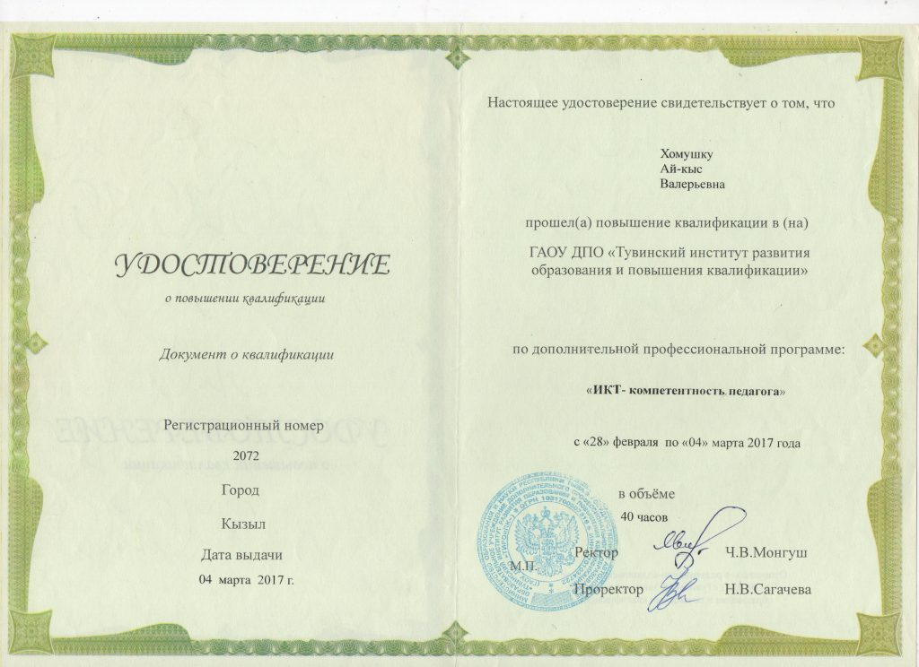 Ф.И.О. : Хомушку Ай-кыс Валерьевна