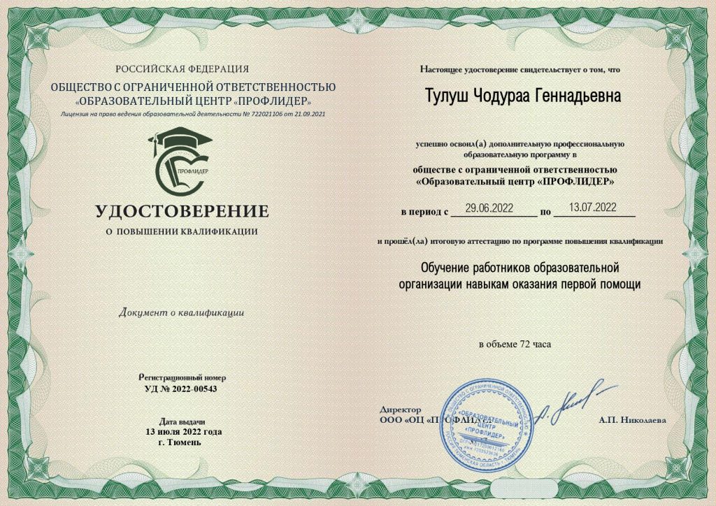 Ф.И.О. Тулуш Чодураа Геннадьевна